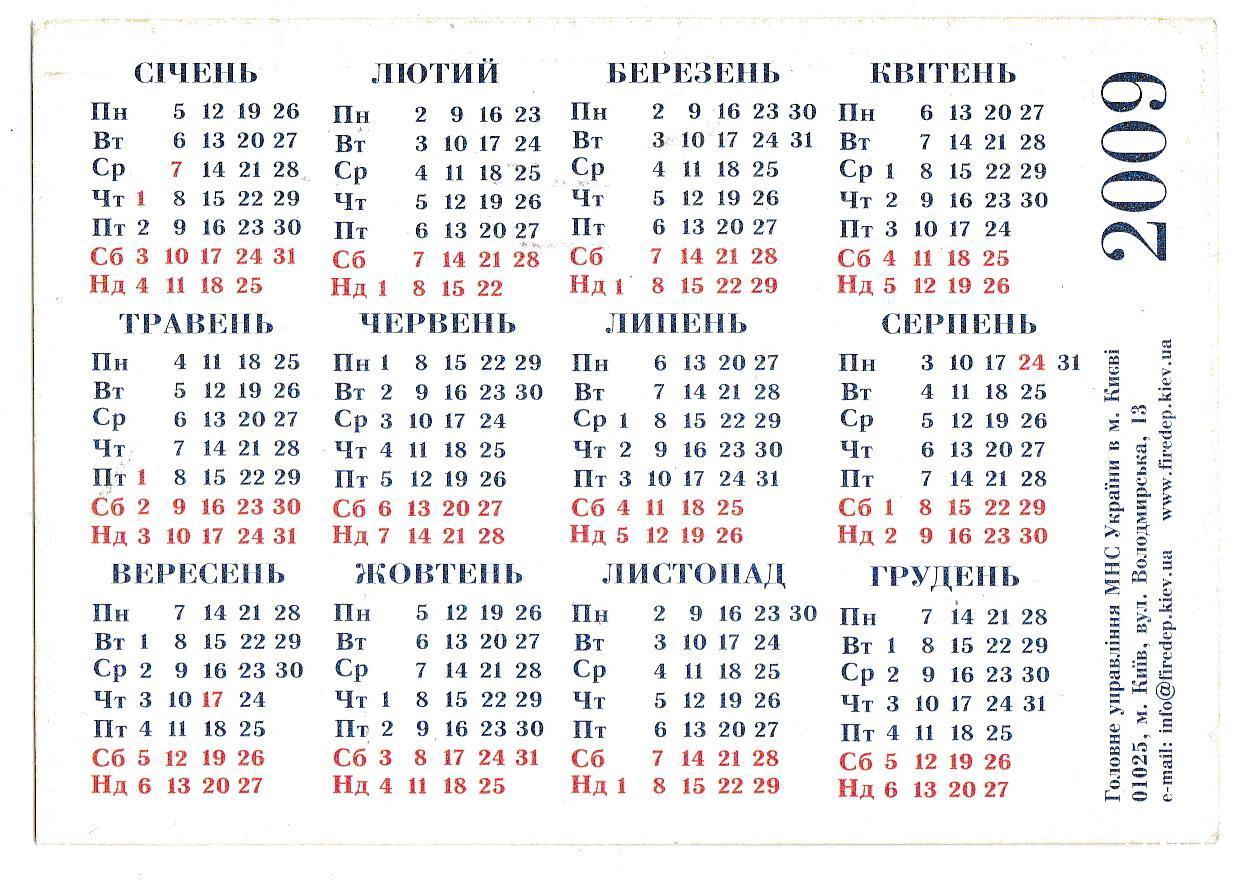2001-2020Календарик 2009 Фестиваль КВК юних пожежників, МНС.