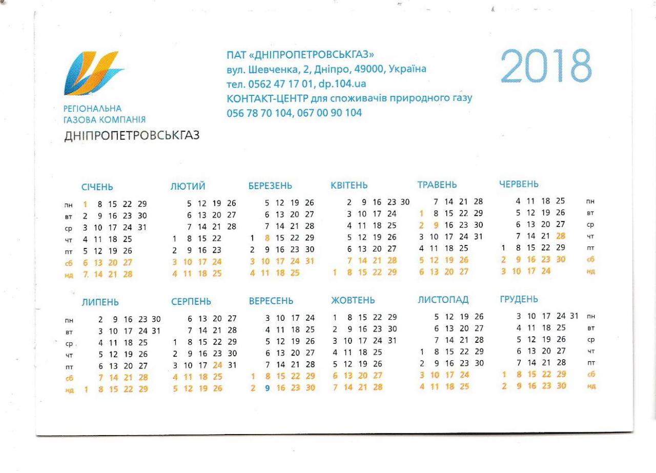 2001-2020Календарик 2018 Дніпропетровськгаз.