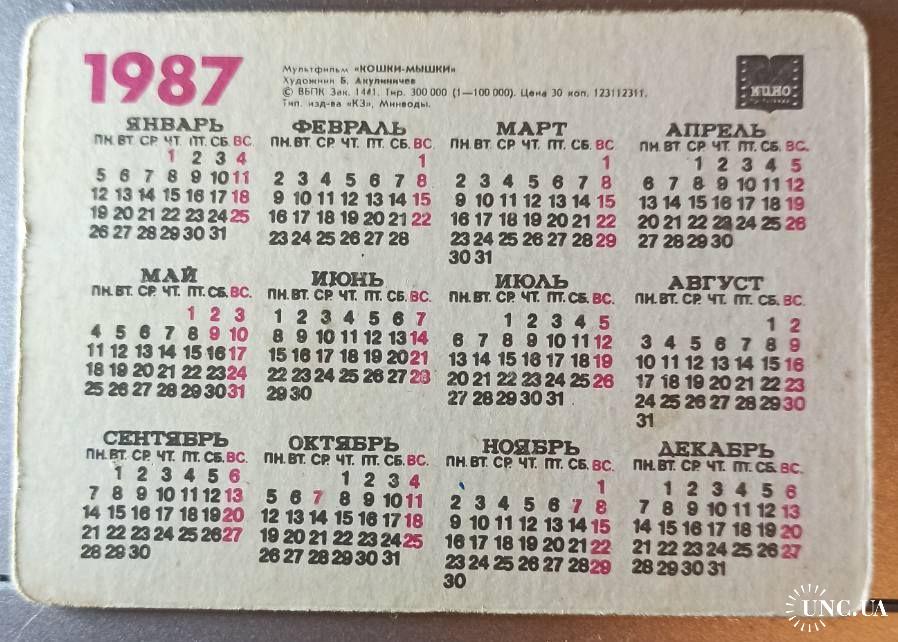 1981-2000Календарик Кошки-мышки 1987, переливающийся