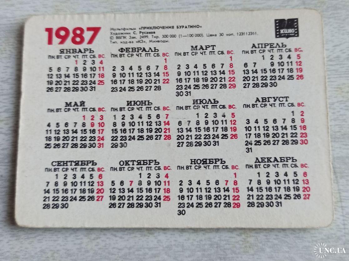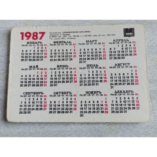 1981-2000Календарик Приключения Буратино 1987, переливающийся