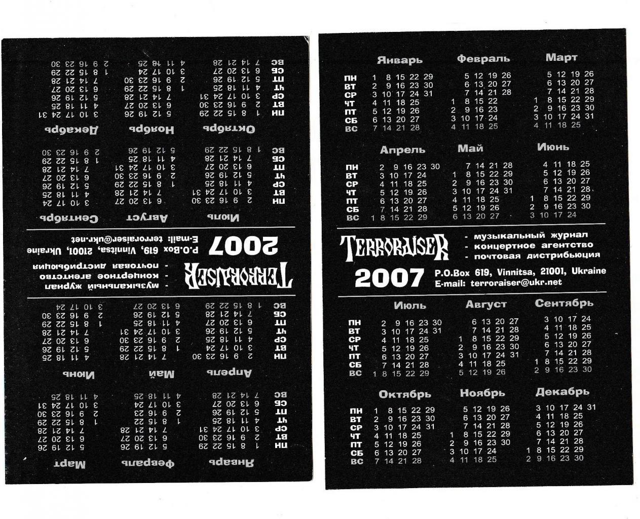 2001-2020Календарики 2007 Rage, Vader, Heavy Metal, Death Metal, Terroraiser.