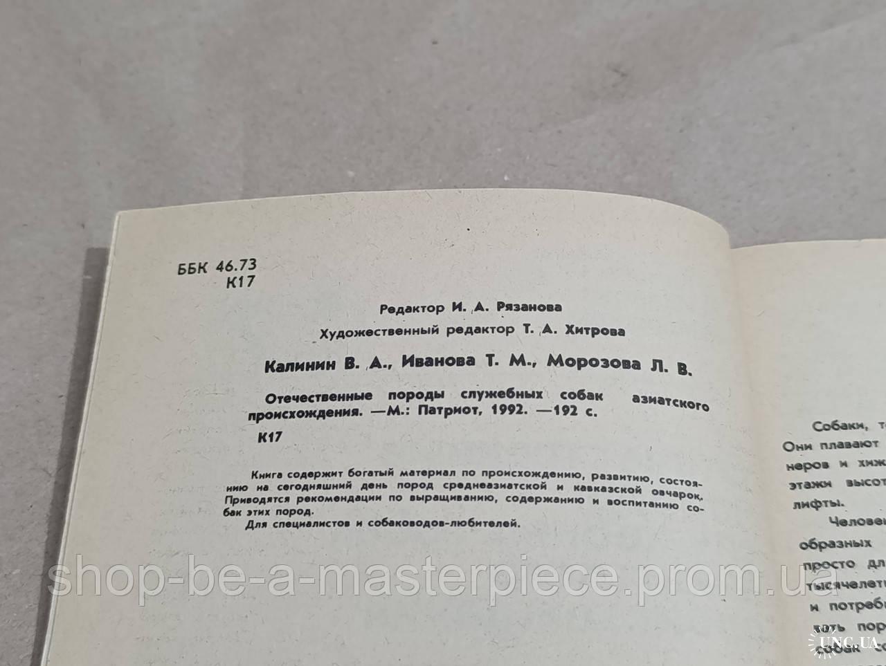 Калинин В. А., Иванова Т. М., Морозова Л. В. Отечественные породы служебных собак азиатского происхождения 1992