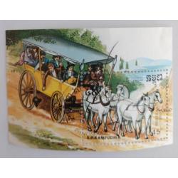 ФлораКамбоджа Кампучия 1989 марка блок лошади животные кони транспорт