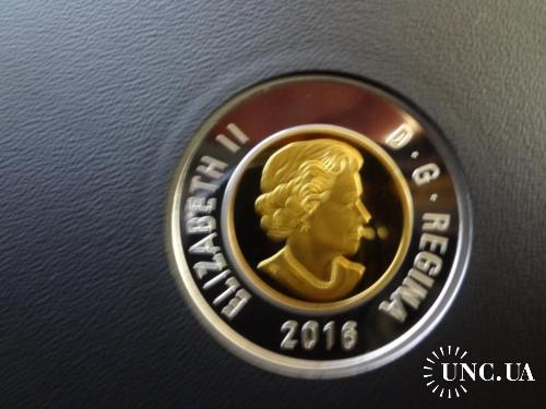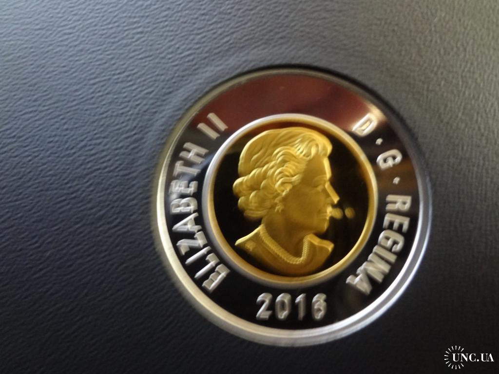 Канада 2 доллара 2016 Полярный медведь серебро с позолотой 9,0 гр. Пруф