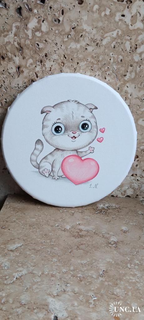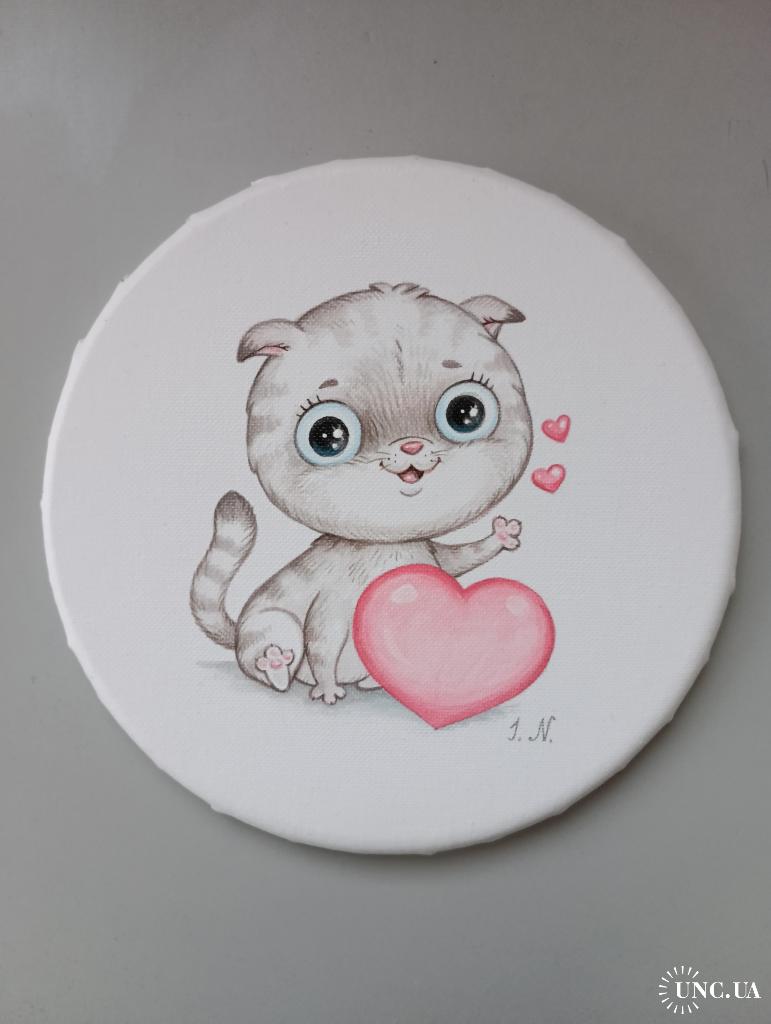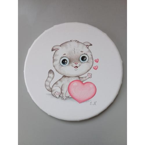 2021-....Картина на круглому полотні "Кіт Л", диаметр 19см. Акрил, лак.