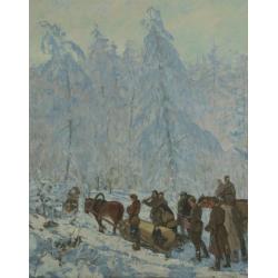 Картина "Похорон партизана (Похороны партизана)", роки написання-орієнтовно 1960-1970ті ХХ ст. Розміри: 1,38Х1,76 см. Техніка: Холст, Олія. Зустріч та перегляд: м. Київ, р-н. ст. м. "Звіринецька"-"Либідська", вихідні дні.