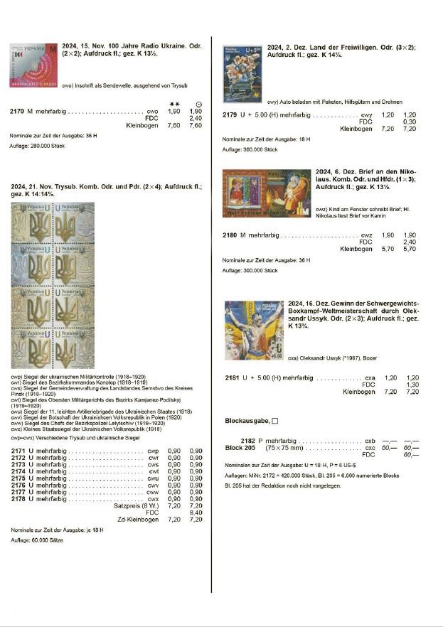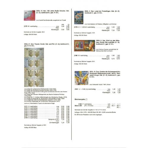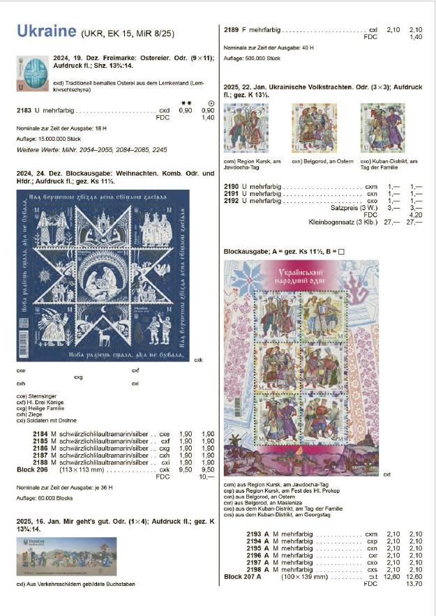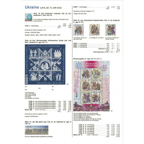 Составление части "Украина" из каталога Michel Osteuropa 2019 и дополнения, сделанoгo из новых выпусков марок из Мichel Rundschau до номера 10/2025. В каталоге представлены почтовые марки Украины до июля 2025 года.
