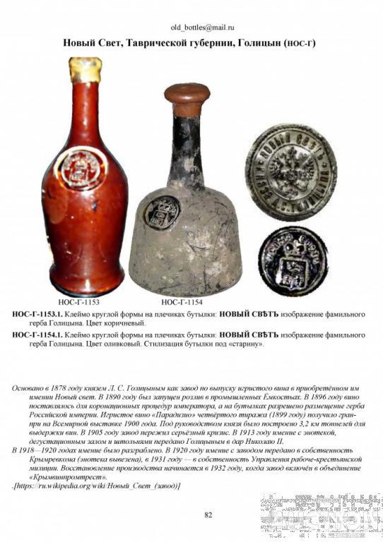 В этом каталоге собраны стеклянные и некоторые керамические емкости для алкогольной продукции Российской Империи и СССР до 1946 года. Первая редакция была в формате черновика.