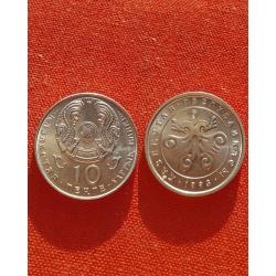 ОригиналКазахстан 10 тенге 1993г.Стилизованный двуглавый петух внутри круга, ,отличный сохран,редкие