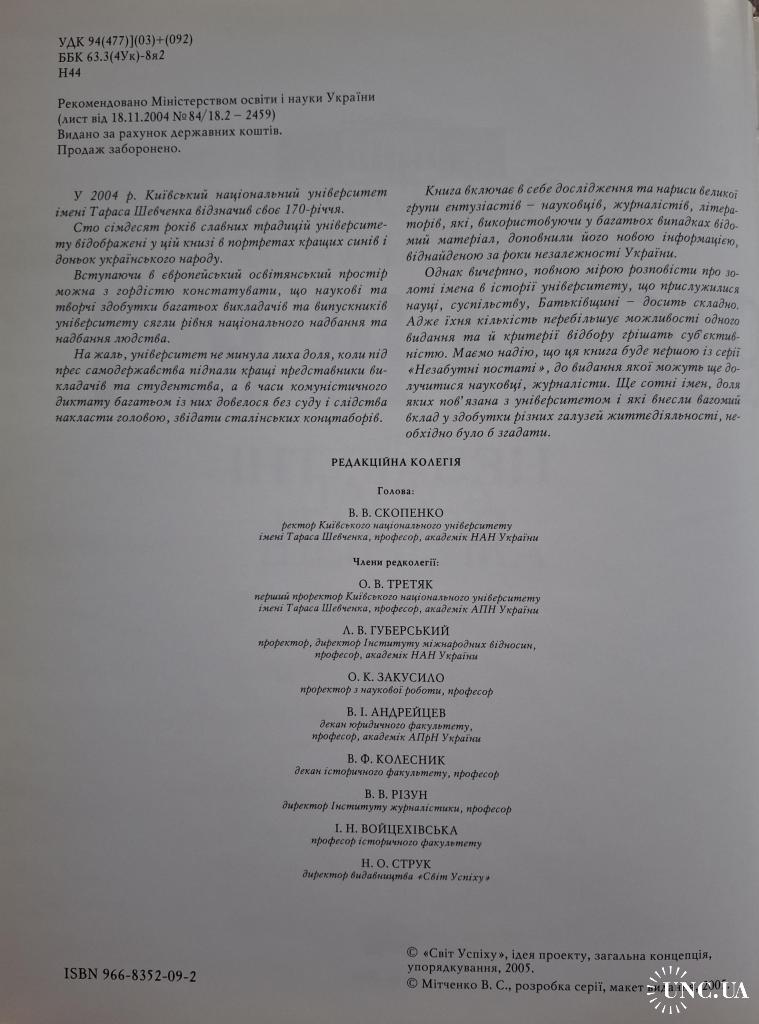 Київський національний університет імені Тараса Шевченка : незабутні постаті / [ред. кол.: В. В. Скопенко, О. В. Третяк, Л. В. Губерський та ін.]. - Київ, 2005. - 464 с.