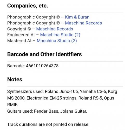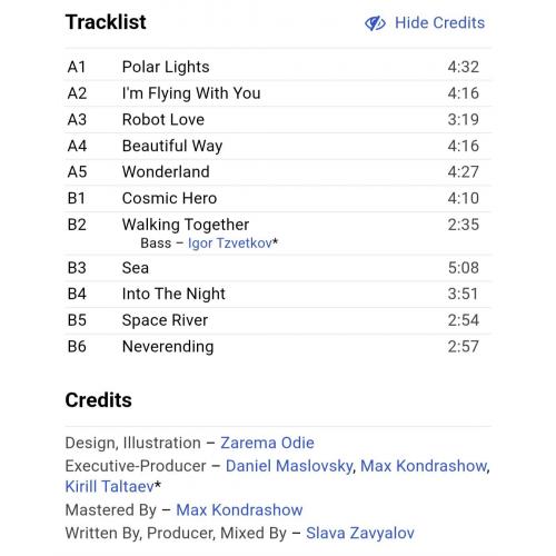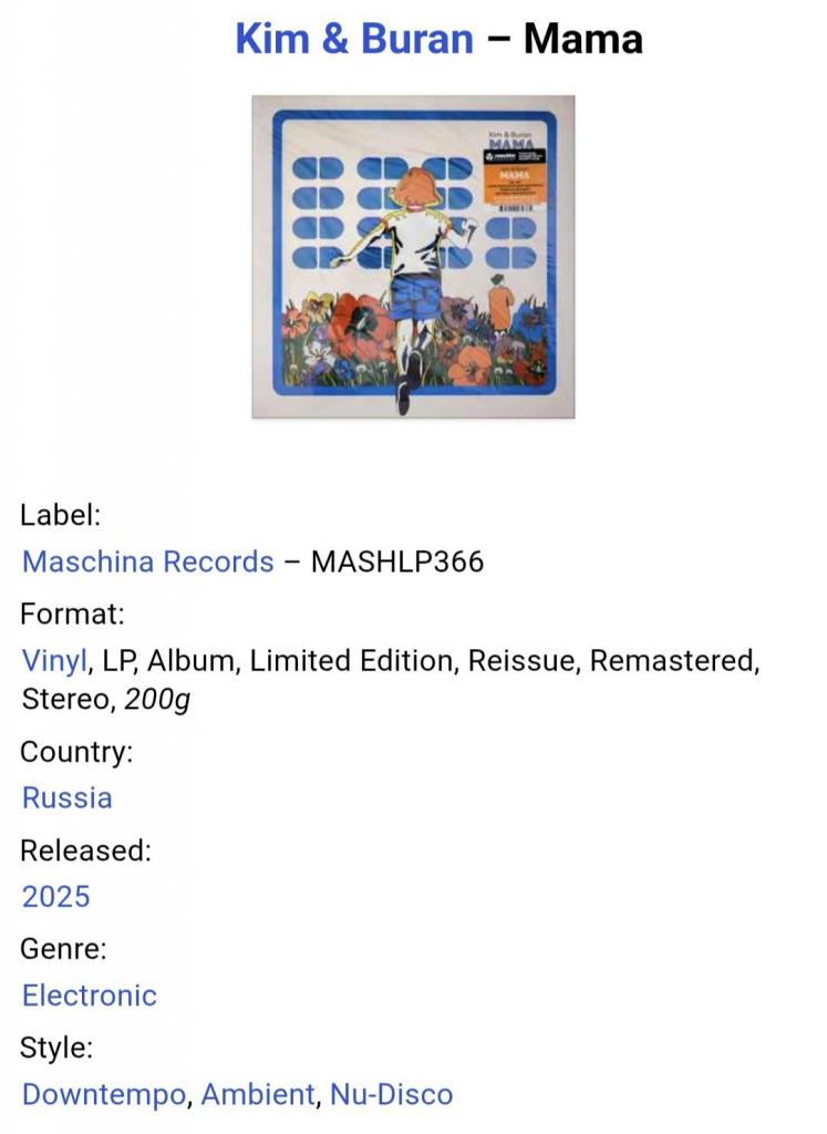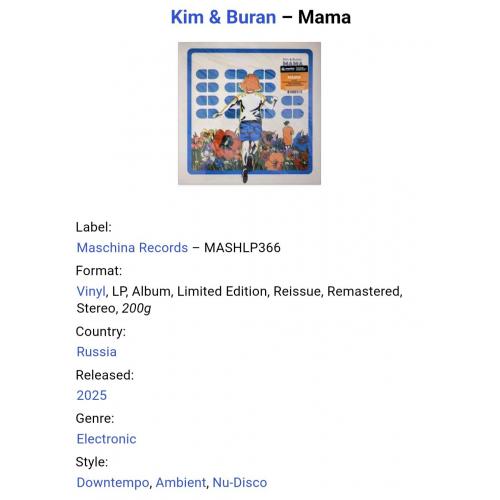 Вінілова платівка. Шостий, в дискографії, студійний альбом, російської Sci-Fi, Space Disco, Downtempo, Easy-Listening групи Kim & Buran, до складу якої входили учасники Слава Зав'ялов, Роман Толмачов, Олексій Альошин та Олександр Дмітрієв (Мама) 2010. Випуск фірми (Maschina Records) Estonia, 2025-ій рік. Лімітований тираж (Limited Edition). Видання нове, запаковане. Категорія S/S. Відправка по Україні службами доставки: Нова Пошта, Укр Пошта, Делівері. Також відправляємо посилки за кордон по цілому світу.