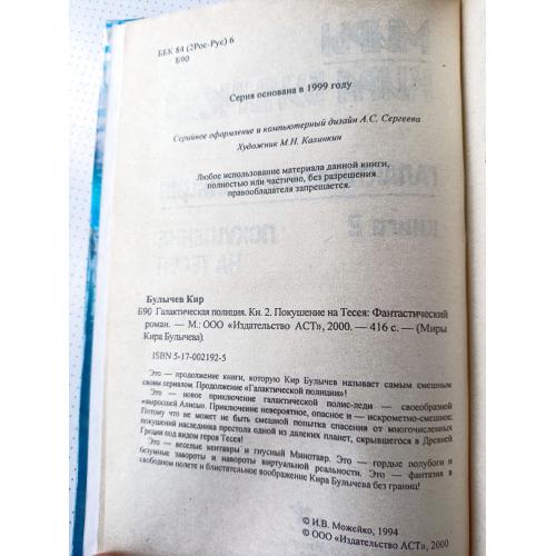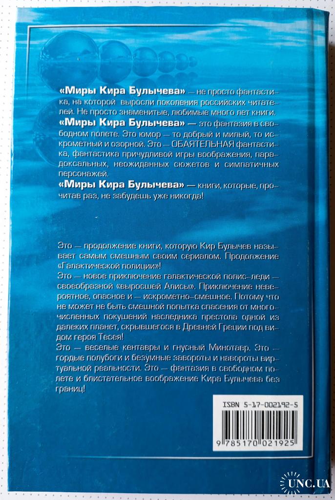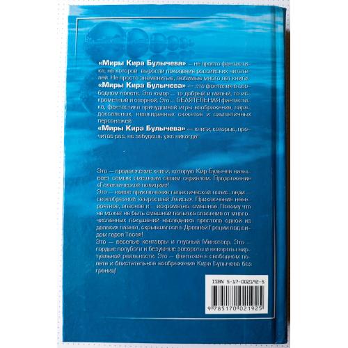 Эту книгу сам Кир Булычев называл самым смешным своим сериалом!.. Как вы полагаете, в кого превратилась бы выросшая Алиса? Более или менее – в героиню "Галактической полиции". И – скорее более, чем менее. Перед читателем приключения галактической полис-леди – своеобразной "выросшей Алисы". Приключение невероятное, опасное и – искрометно-смешное. Потому что не может быть смешной попытка спасения от многочисленных покушений наследника престола одной из далеких планет, скрывшегося в Древней Греции под видом героя Тесея! Это – веселые кентавры и гнусный Минотавр. Это – гордые полубоги и безумныезавороты, и навороты виртуальной реальности. Это – фантазия в свободном полете и блистательное воображение Кира Булычева без границ!