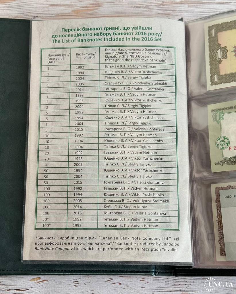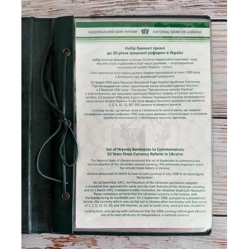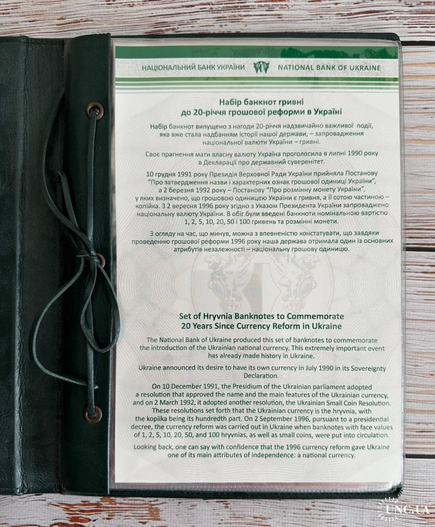 естьДо 20-річчя запровадження національної валюти України - гривні Національного банку України, випуск колекційних банкнот гривні у клясерах. Набор банкнот містить по 28 колекційних банкнот гривні - різних років. Усі банкнот. В стані UNC
