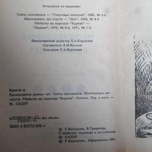 «Твори різних років. Таємниця пансіонату. Шістнадцять років потому. Вбивство на пароплаві "Карнак".»: Роман