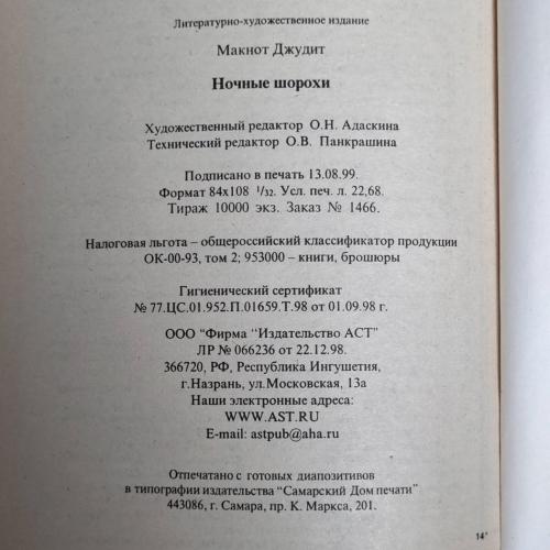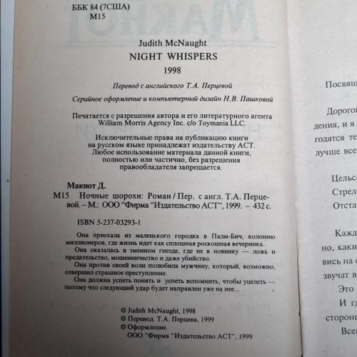Книга Джудіт Макнот. "Нічні шерехи": Роман