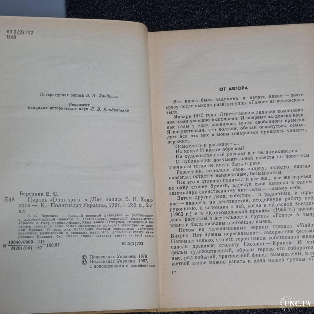 Книга Березняк Є. С. Пароль «Dum spiro...»