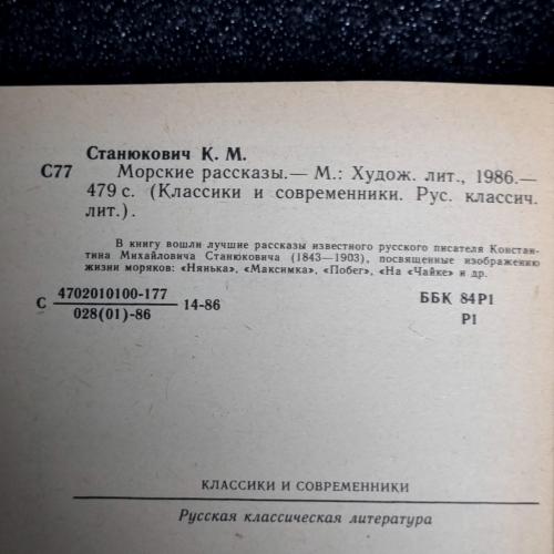 До книги увійшли найкращі оповідання відомого російського письменника Костянтина Михайловича Станюковича (1843-1903), присвячені зображенню життя моряків: «Нянька», «Максимка», «Втеча», «На «Чайці» та ін.