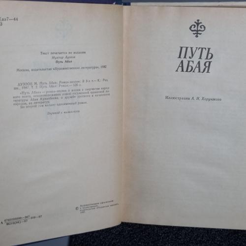 «Шлях Абая» – роман-епопея про життя і творчість народного поета, основоположника нової писемної казахської літератури Абая Кунанбаєва, про дружбу російського і казахського народів, їх літератур. До другого тому входить однойменний роман.
