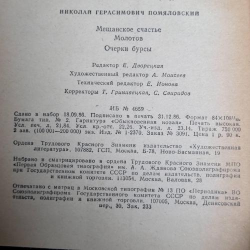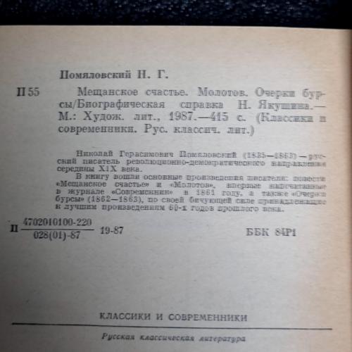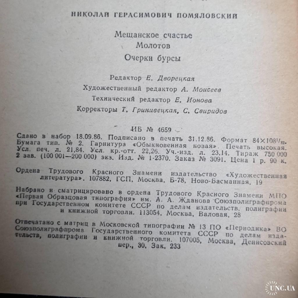 Книга Помяловський М. Г. «Міщанське щастя. Молотов. Нариси бурси»: Повість