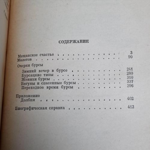До книги увійшли основні твори письменника: повісті «Міщанське щастя» та «Молотов», вперше надруковані в журналі «Современник» у 1861 році, а також «Нариси бурси» (1862–1863), які своєю нищівною силою належать до кращих творів 60-х років минулого століття.