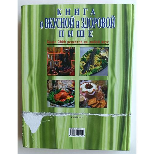 У виданні 2003 року "Книги про смачну та здорову їжу" понад дві тисячі рецептів. Але крім рецептів у книзі наводяться нові наукові дані про продукти харчування, а також безліч цінних порад, "маленьких кухарських секретів", барвистих ілюстрацій. Великий формат книги – 20,5х26 см. Дефект на тильній стороні палітурки (останні фото)