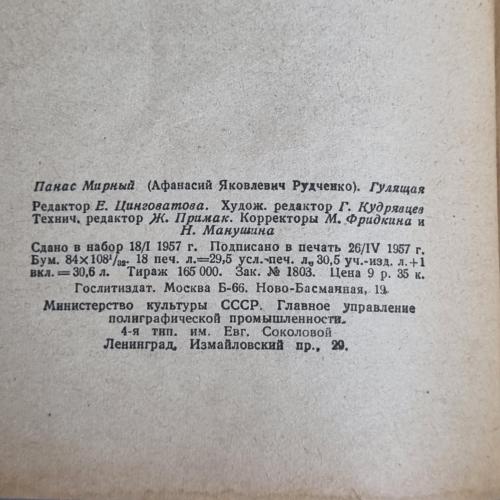 Книга П. Мирний "Гулящая": Роман 1957