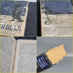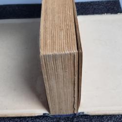 Пошкоджений корінець: Корінець сильно потертий і розшарований, блок сторінок відходить від обкладинки.