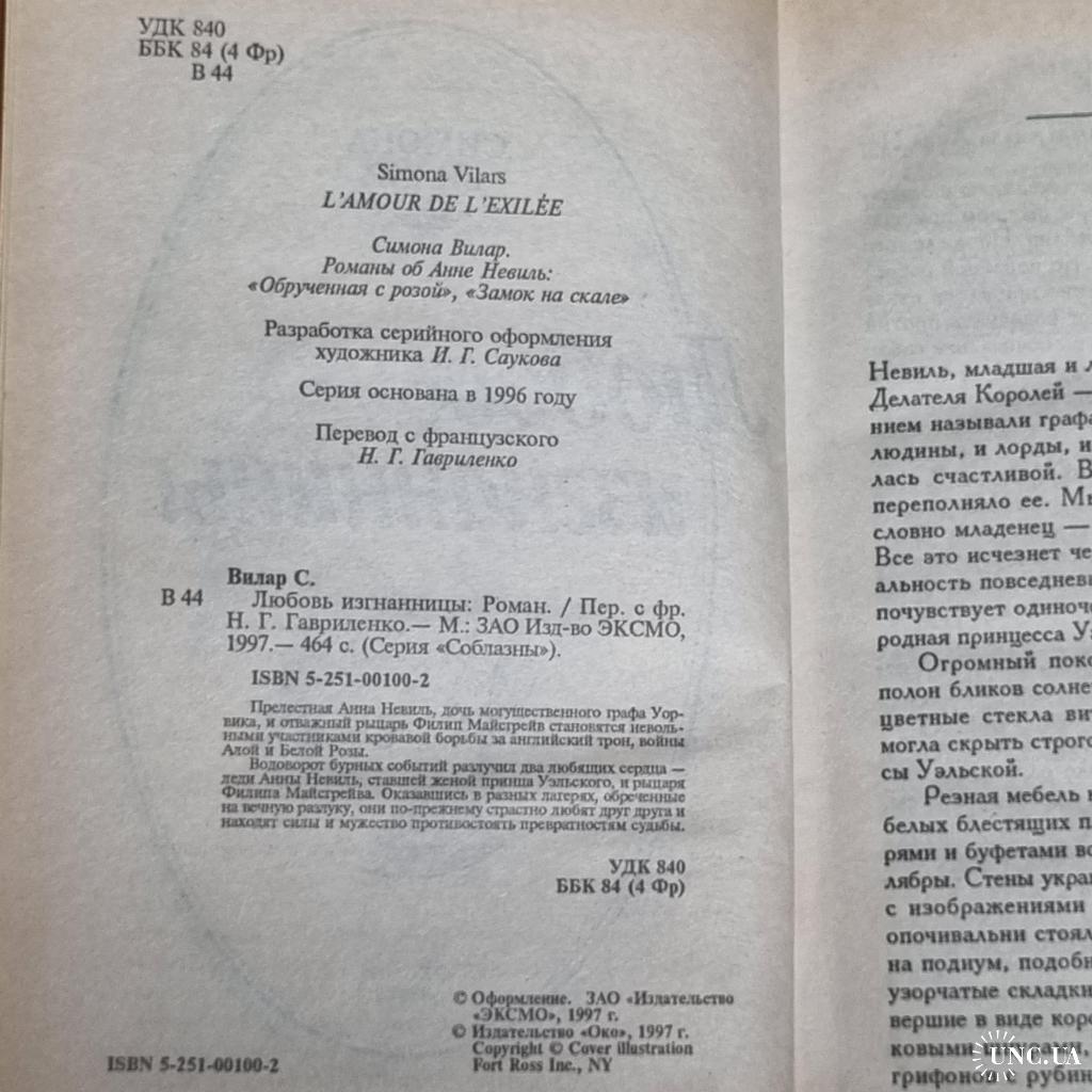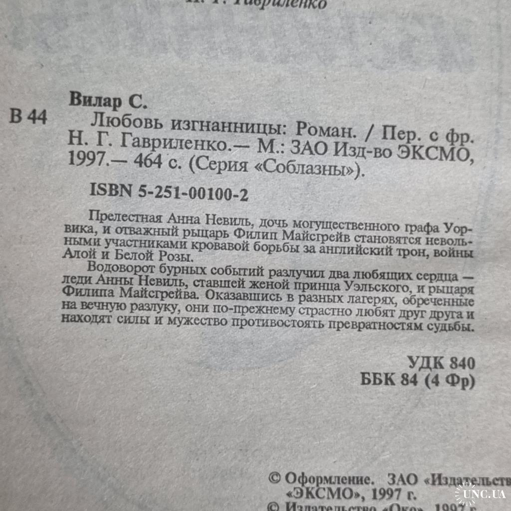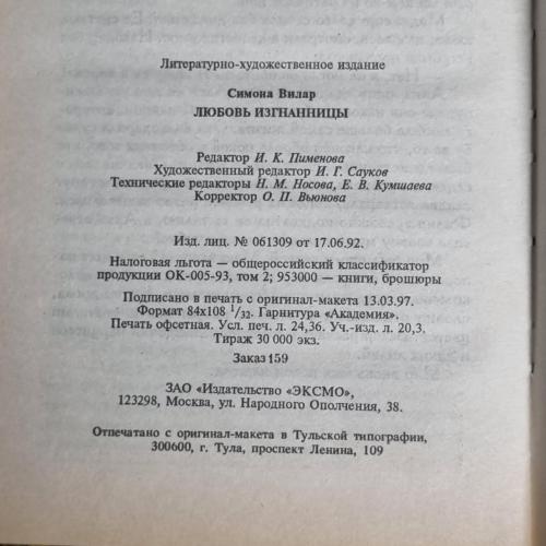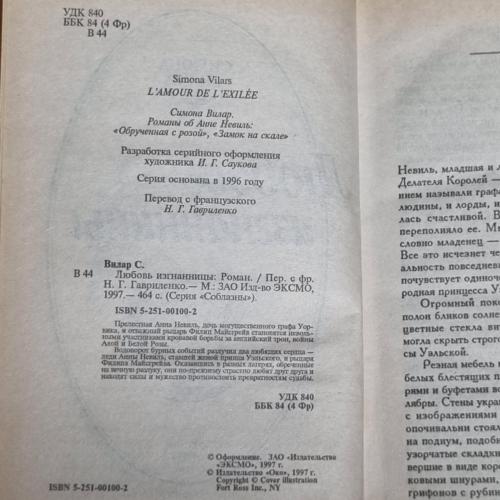 Книга Вілар С. "Любов вигнанки": Роман