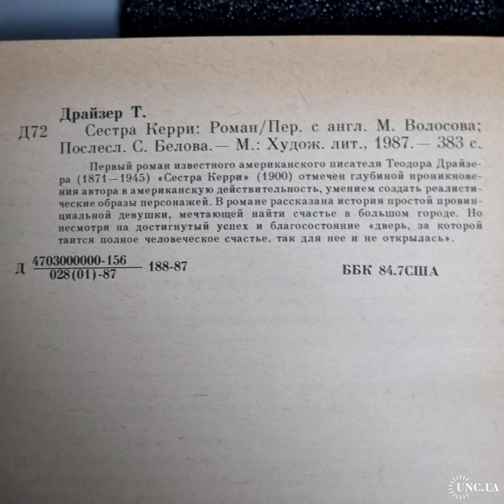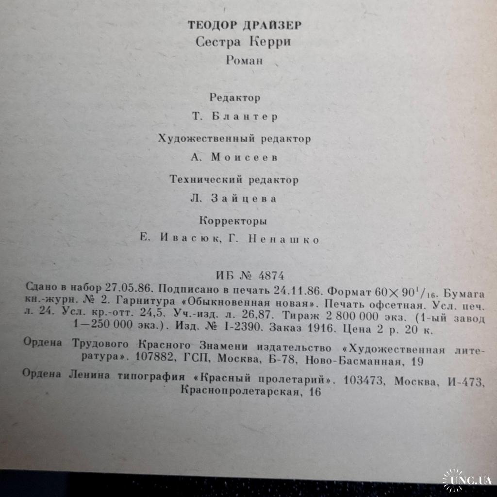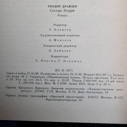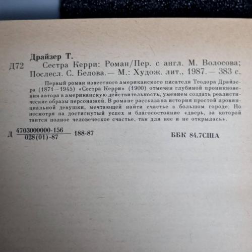 Книга Драйзер Т«Сестра Керрі»: Роман