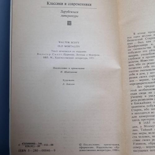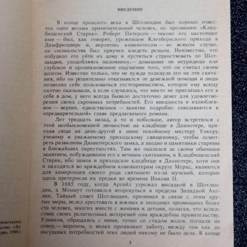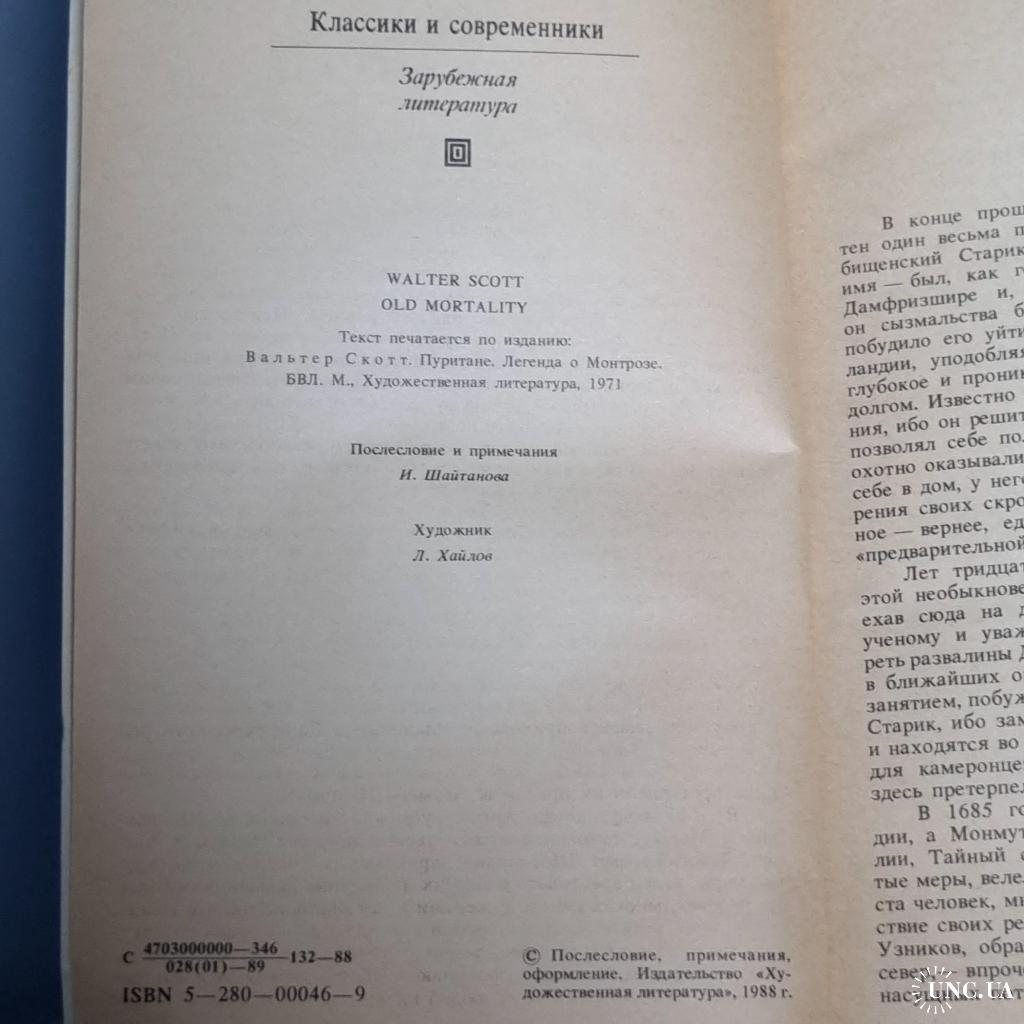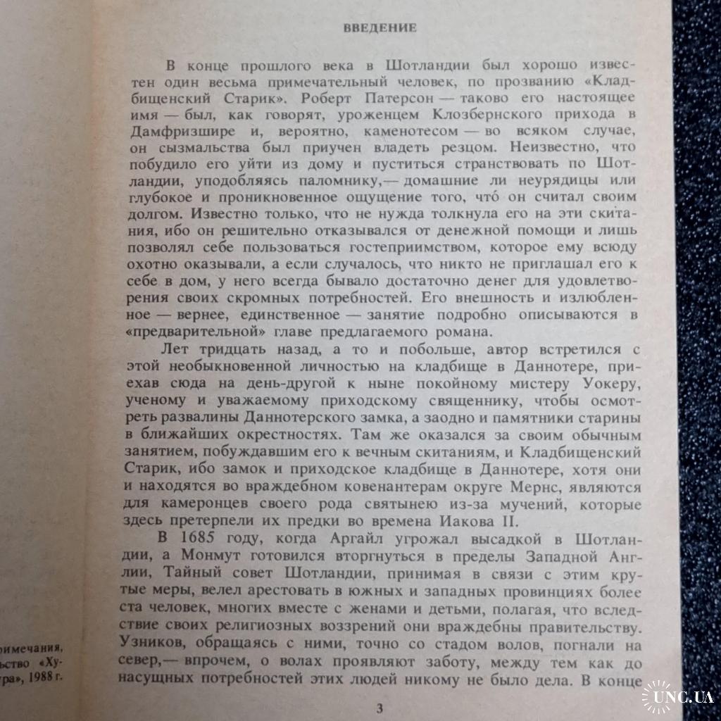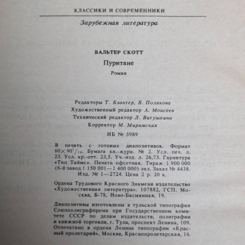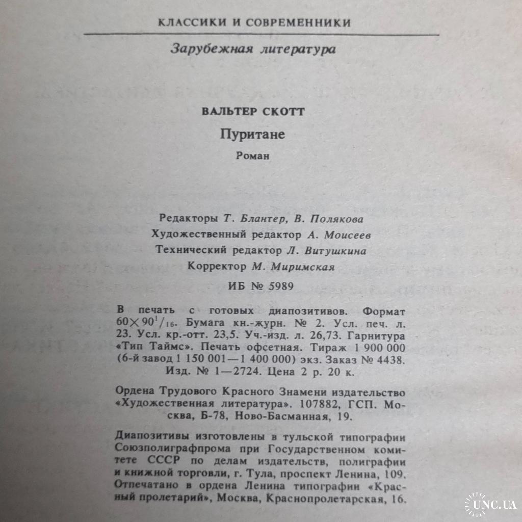 Роман «Пуритани» (1816) великого англійського письменника Вальтера Скотта (1771-1832) належить до шотландського циклу його історичних романів. У ньому відображено повстання 1679 року в Шотландії, спрямоване проти династії Стюартів, реставрація якої відбулася в 1660 році. Приватні долі героїв тісно пов'язані з цією драматичною подією в історії Англії1.