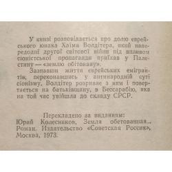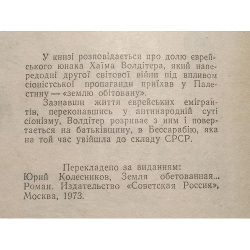У книзі розповідається про долю єврейського юнака Хаїма Вольдітера, який наперед одні другої світової війни під впливом сіоністської пропаганди приїхав у Палестину — «землю обітовану».