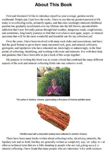 В отличие от сложных для понимания и сугубо технических академических томов, это красочное и легкое в использовании руководство, посвященное коллекционированию камней (поделочных и драгоценных) и минералов, является идеальным для тех читателей, которые стремятся расширить свое понимание без многочасового блуждания в лабиринтах науки. Красиво иллюстрированное, содержащее 700 цветных фотографий, прекрасно организованное и детальное издание позволяет научиться идентифицировать камни, а также доставит вам удовольствие своей простотой и энтузиазмом автора, одного из ведущих мировых коллекционеров агата, который дал себе самому прозвище «охотник за камнями».