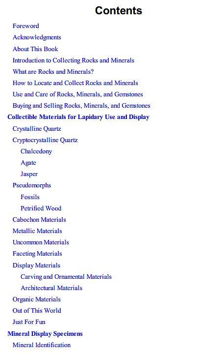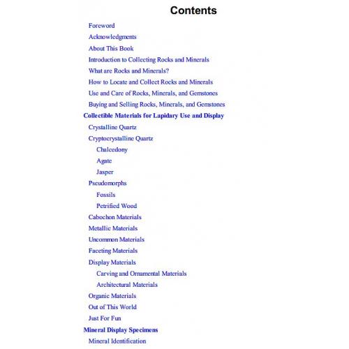 В книгу включены разделы об оценке камней, а также введение в ювелирную обработку, включая резку и полировку драгоценных и полудрагоценных камней для использования в ювелирных изделиях или для экспонирования.