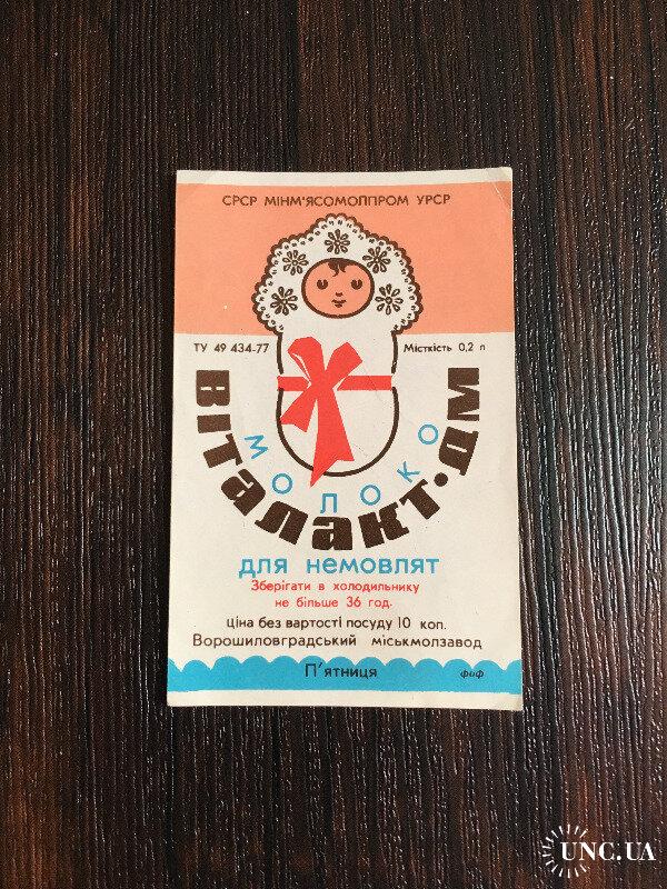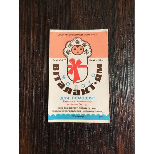 Этикетка Молоко Виталакт ДМ времен СССР 1977 года.