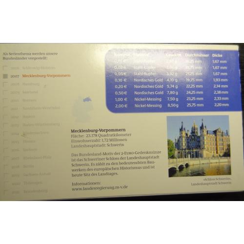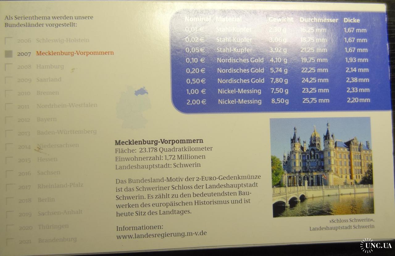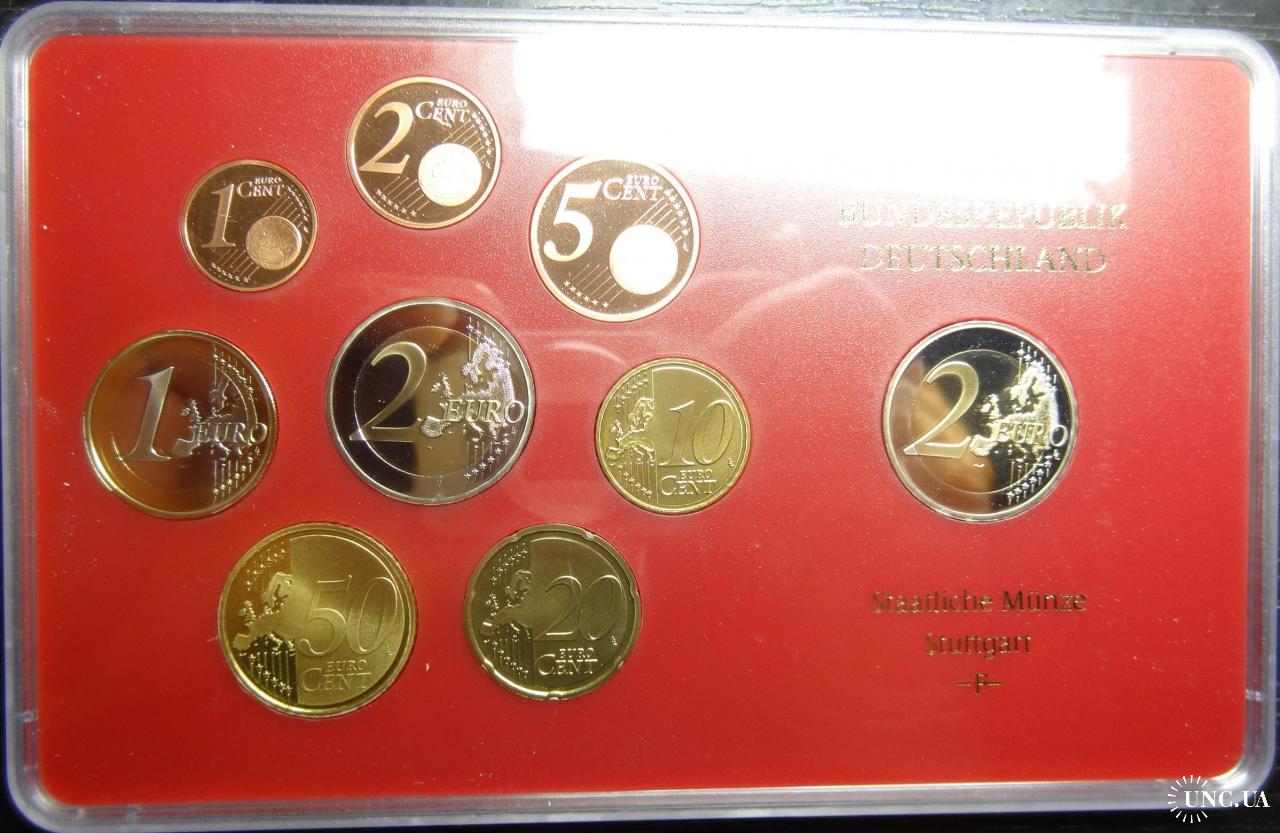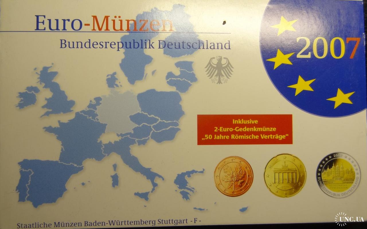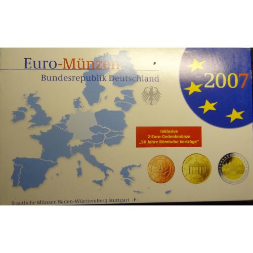 Complete euro-set of Germany 2007 F + 2 commemorative 2 euro (Stuttgart mint) UNC / Повний комплект обігових євромонет Німеччини 2007 F + 2 ювілейні монети 2 євро (монетний двір Штутгарт) UNC