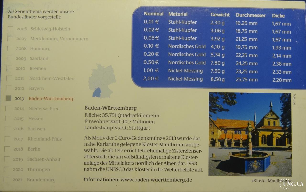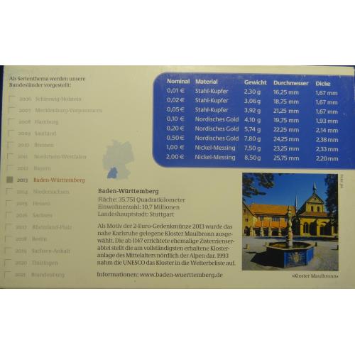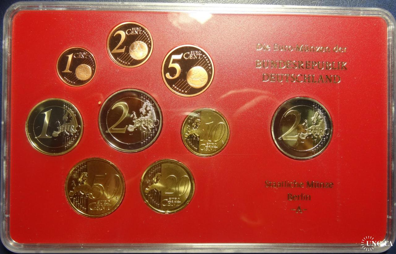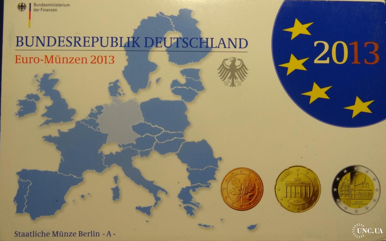 Complete euro-set of Germany 2013 A + 2 commemorative 2 euro (Berlin mint) UNC / Повний комплект обігових євромонет Німеччини 2013 A + 2 ювілейні монети 2 євро (монетний двір Берлін) UNC