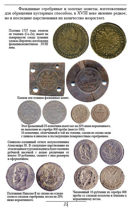 Книга рассказывает о подделках, имитирующих подлинные российские монеты царского и императорского периодов, причинах их возникновения, способах изготовления и методах выявления. Приводится большое количество рисунков и фотографий монет из собрания музея Истории денежного обращения.