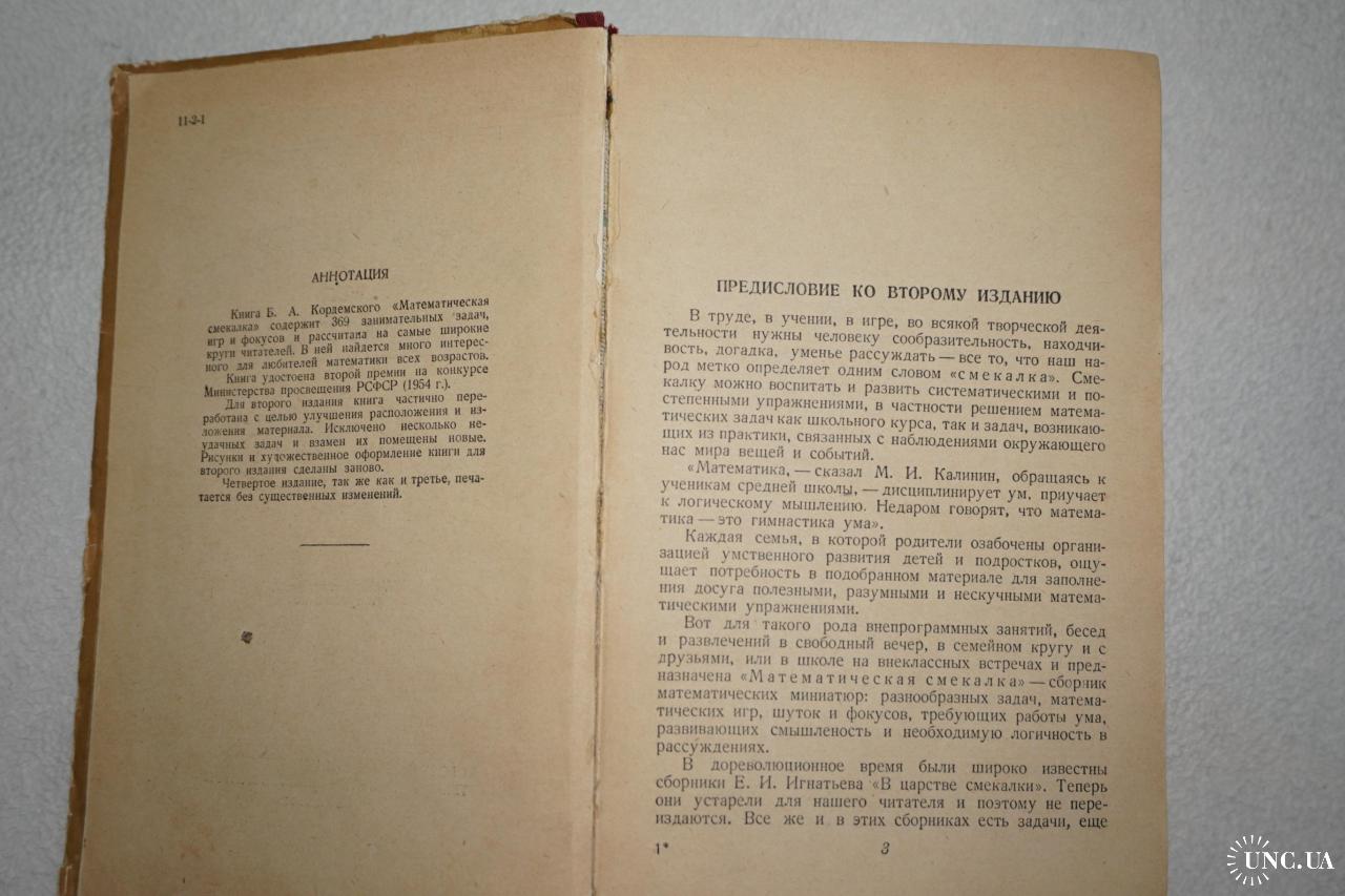 Книга содержит 369 занимательных задач, игр и фокусов и рассчитана на самые широкие круги читателей. В ней найдется много интересного для любителей математики всех возрастов. Ко всем задачам даны ответы. С о д е р ж а н и е. 1. Затейные задачи. 2. Затруднительные положения. 3. Геометрия на спичках. 4. Семь раз примерь один раз отрежь. 5. Уменье везде найдет примененье. 6. Домино и кубик. 7 .Свойства девятки. 8. С алгеброй и без нее. 9. Математика почти без вычислений. 10. Математические игры и фокусы. 11. Делимость чисел. 12. Кросс-суммы и волшебные квадраты. 13. Курьезное и серьезное в числах. 14. Числа древние, но вечно юные. 15. Геометрическая смекалка в труде.