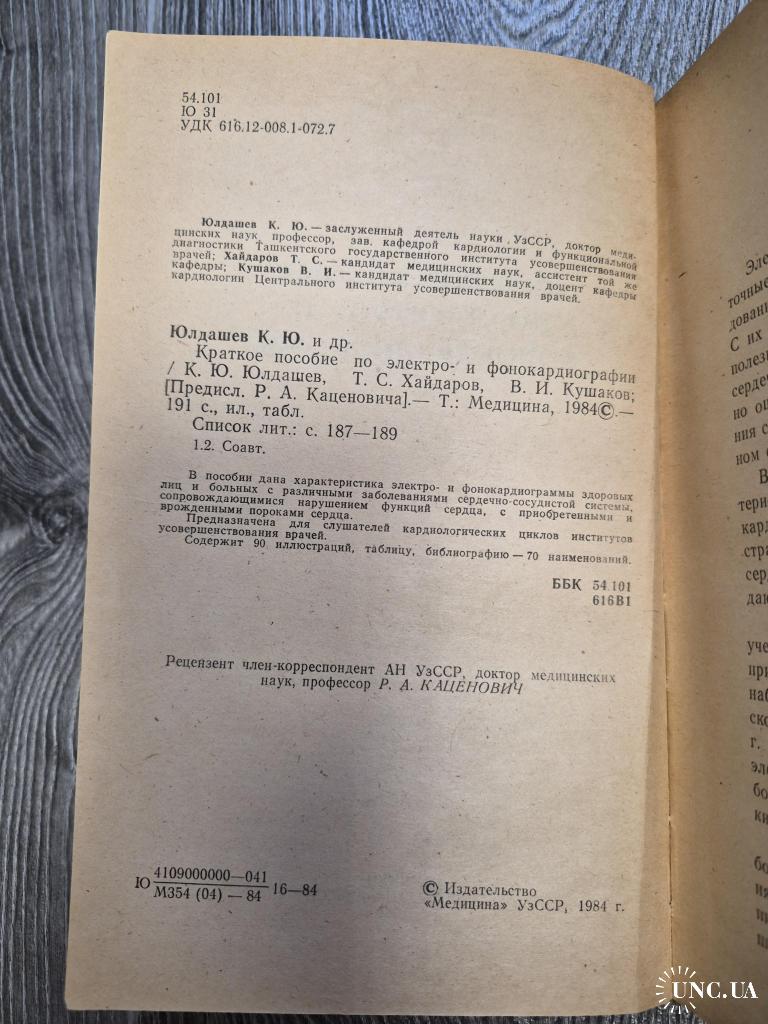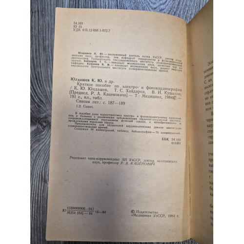 Краткое пособие по электро- и фонокардиографии, 1984. К. Ю. Юлдашев, Т. С. Хайдаров, В. И. Кушаков.