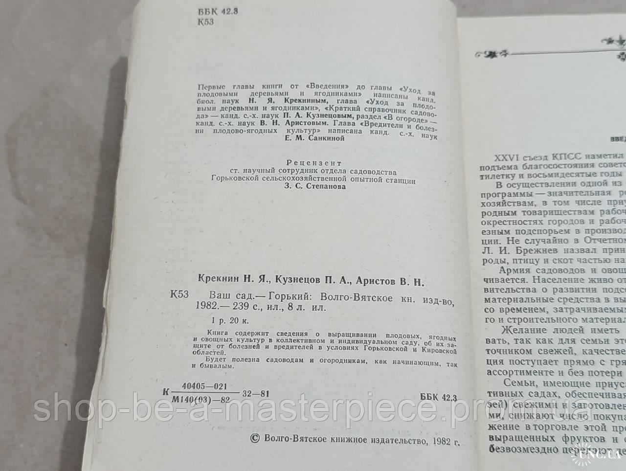 Крекнин Н. Я., Кузнецов П. А., Аристов В. Н. Ваш сад 1982