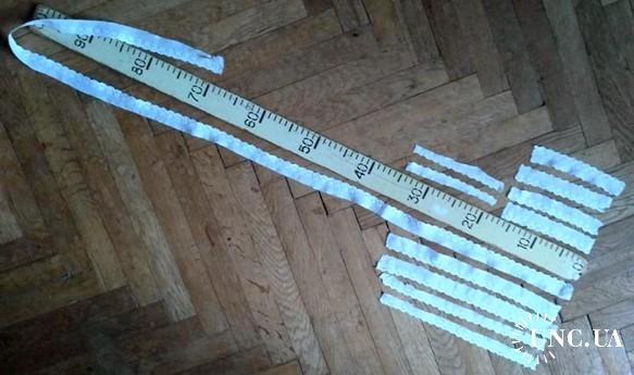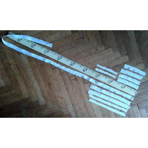 Длины 16+16+16+16+16+16+29+32+32+30+139 см = 358 см. Ширина 1,5 - 2,5 см, смотри фото