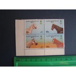 Квартблок 4 марки повна серія Саудівська Аравія 1990 фауна коні MNH