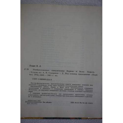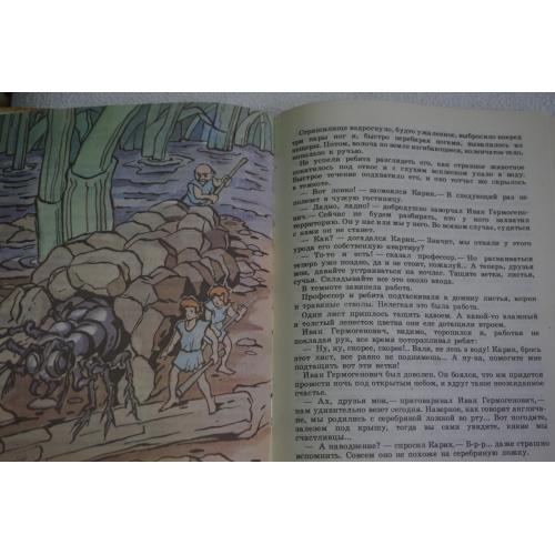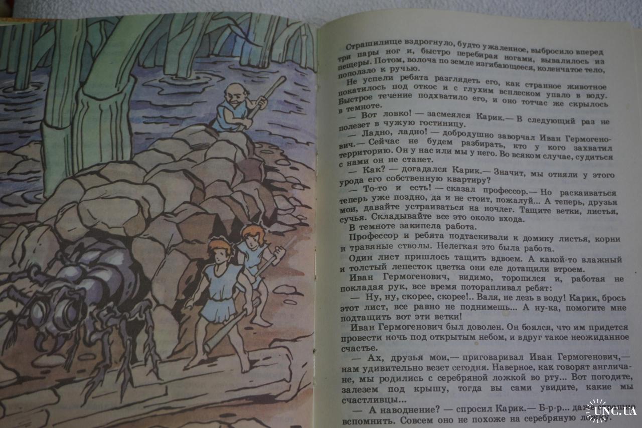 Научно-фантастическая приключенческая повесть - показывает читателю мир растений и насекомых через увеличительное стекло. Обыкновенные ребята, Карик и Валя, из-за неосторожности становятся крошечными и попадают в совершенно незнакомую и поэтому страшную обстановку: их окружают невиданные растения, отовсюду угрожают чудовищные твари. Но постепенно ребята поняли, что в их руках самое сильное оружие - знание, и с помощью профессора-биолога смело сражаются со всеми опасностями, которые встречаются на их пути. В увлекательной, приключенческой форме писатель рассказывает много любопытного о растениях и насекомых, которые нас окружают.