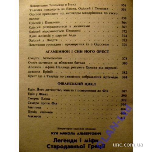 Микола Кун. ЛЕГЕНДИ І МІФИ СТАРОДАВНЬОЇ ГРЕЦІЇ (укр.мовою!). 1993 р.