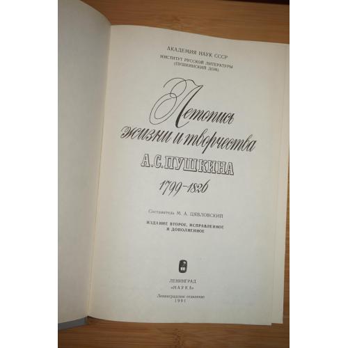 В этом издании `Летописи жизни и творчества` великого русского писателя А. С. Пушкина сосредоточены с максимально возможной полнотой все данные его биографии: перечень его произведений, прижизненная критика, упоминания о нем и о его произведениях в печати, переписке и воспоминаниях современников.