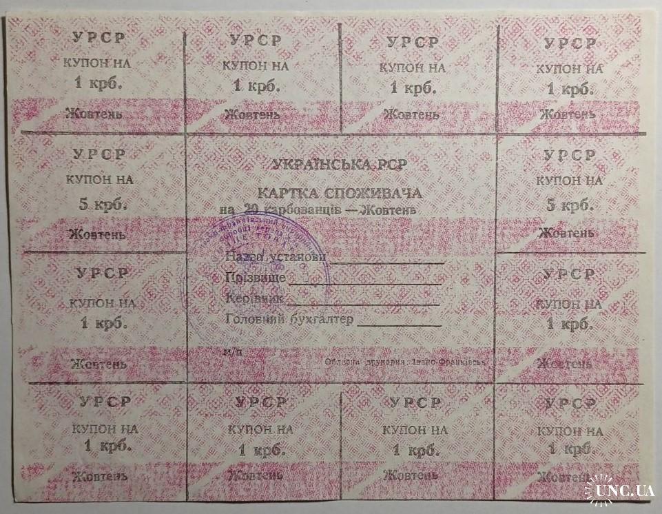 Лист купонів. Картка споживача. Карточка потребителей. Лист купонов. 20.