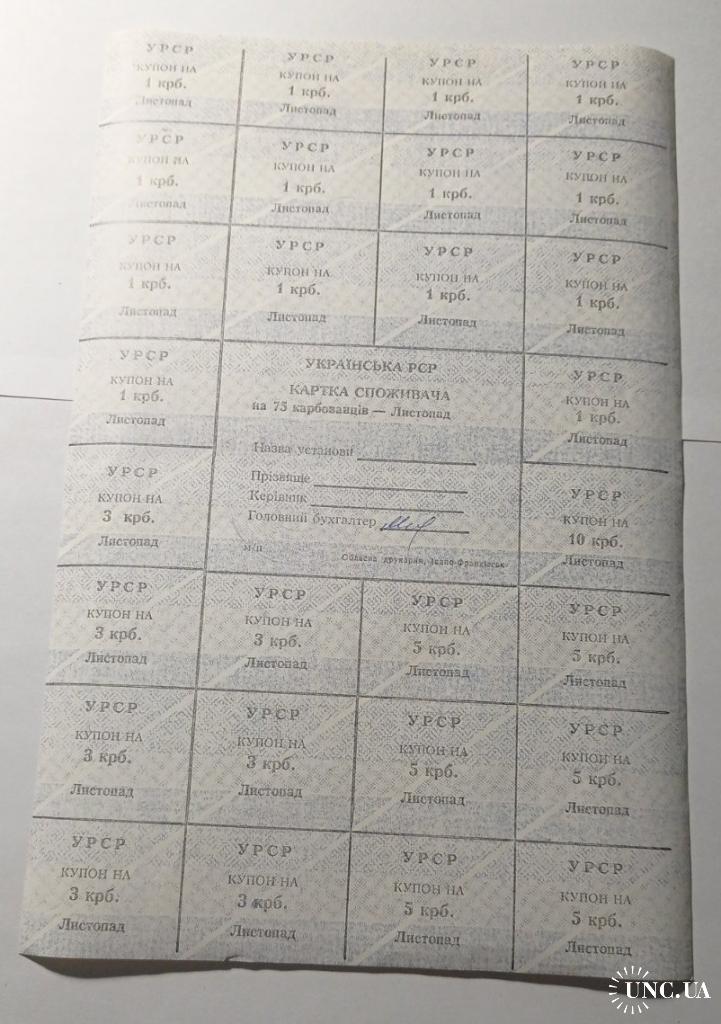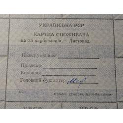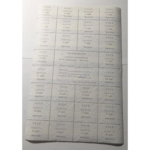 Лист купонів. Картка споживача. Карточка потребителя. Лист купонов. 75.
