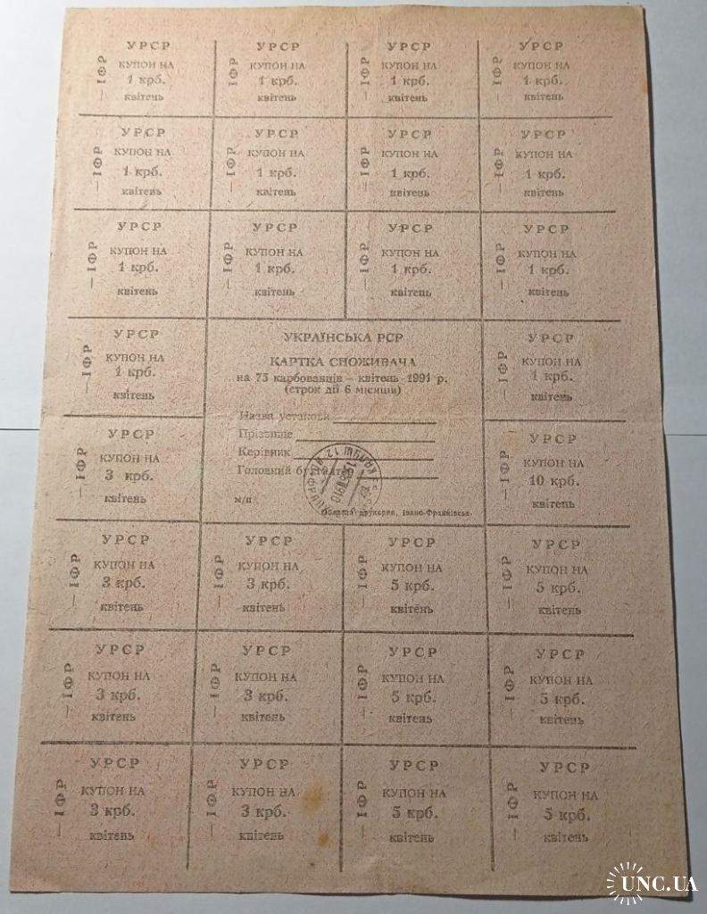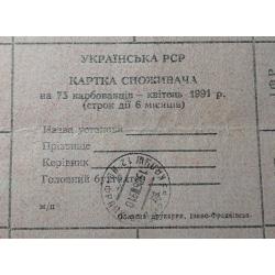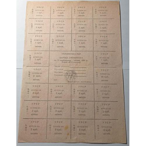 Лист купонів. Картка споживача. Карточка потребителя. Лист купонов. 75.