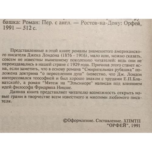 Лондон. Мятеж на Эльсиноре. Смирительная рубашка. Серия Призрак. Издательство Орфей 1991 год. Отличное состояние