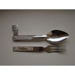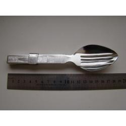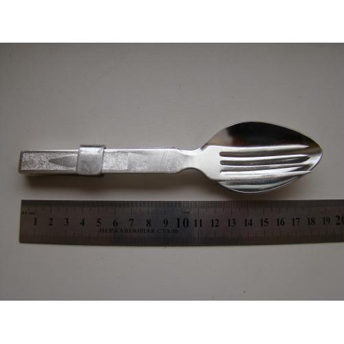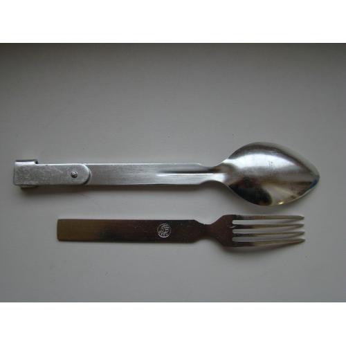 1981-2000Набор новый, изготовлен из алюминия .На ложке приклепан зажим, который соединяет ложку с вилкой. Нечастый. В остальном все как на фото.